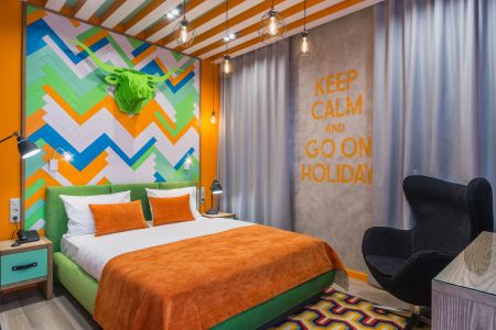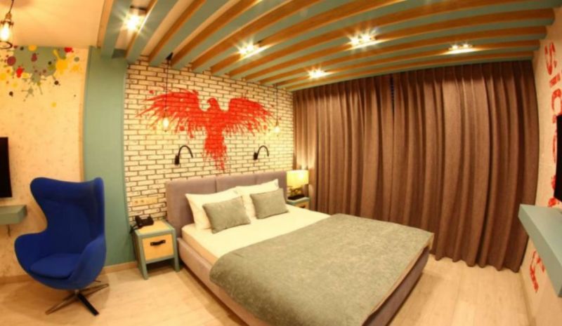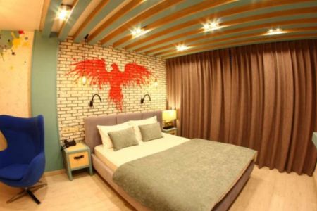 В отеле представлено 16 просторных и комфортабельных номеров. Уникальный интерьер, смелые дизайнерские решения и яркие цвета оставляют неизгладимые впечатления у всех гостей отеля. Ванные комнаты оснащены всем необходимым, в том числе туалетными средствами и полотенцами. На территории гостиницы до позднего вечера работает кафе, где можно пообедать и поужинать блюдами традиционной крымской кухни. Для организации деловых мероприятий обустроен конференц-зал вместимостью до 20 человек.